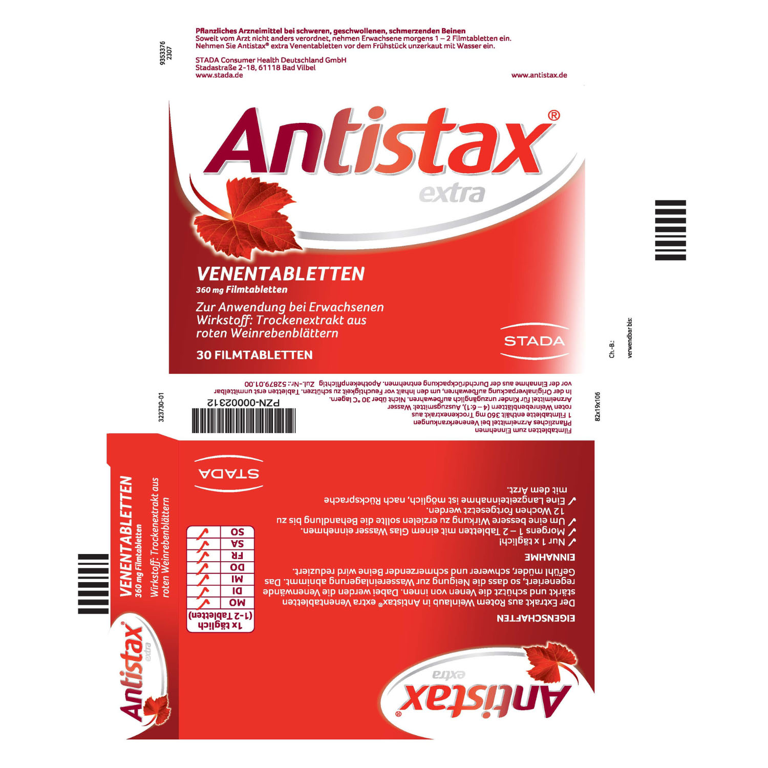 Antistax® extra Venentabletten mit der medizinischen Kraft des Roten Weinlaubs lindern geschwollene und schmerzende Beine. Der Wirkstoff setzt genau dort an, wo der Schaden entsteht: an der Venenwand. Die Venenwände werden nachweislich repariert, gestärkt und geschützt. Der Extrakt des Roten Weinlaubs besitzt einen hohen Gehalt an sekundären Pflanzenstoffen, den sogenannten Flavonoiden. Durch die gezielte Wirkung in der Vene werden: