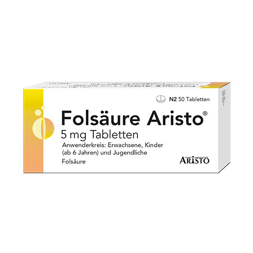 Folsäure ist maßgeblich an der Blutbildung sowie am Wachstum und an der Vermehrung unserer Zellen beteiligt. Das essentielle Vitamin ist für alle Entwicklungs- und Erneuerungsprozesse in unserem Körper unentbehrlich. Das gilt auch für die gute Entwicklung eines Babys im Mutterleib. Die empfohlene Tageszufuhr beträgt 300 μg (Mikrogramm). Sie wird in Deutschland von einem großen Teil der Erwachsenen nicht erreicht. Folsäure Aristo® 5 mg von Aristo Pharma ist ein Arzneimittel mit dem bewährten Wirkstoff zur Vorbeugung und zum Ausgleich von Folatmangel.