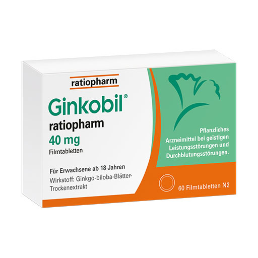 Wirkstoff: Ginkgo-biloba-Blätter-Trockenextrakt. Anwendungsgebiete: -40 mg; 80 mg; 120 mg; Tropfen: Zur symptomatischen Behandlung von hirnorganisch bedingten Leistungsstör. im Rahmen eines therapeutischen Gesamtkonzeptes bei Abnahme bzw. Verlust erworbener geistiger Fähigkeiten (dementielles Syndrom) mit den Hauptbeschwerden: Gedächtnisstörungen, Konzentrationsstörungen, depressive Verstimmung, Schwindel, Ohrensausen, Kopfschmerzen. Verlängerung der schmerzfreien Gehstrecke bei peripherer arterieller Verschlusskrankheit bei Stadium II nach FONTAINE („Schaufensterkrankheit“) im Rahmen physikalisch-therapeutischen Maßnahmen, insbesondere Gehtraining. Schwindel, Ohrgeräusche infolge Durchblutungsstörungen oder altersbedingten Rückbildungsvorgängen. -240 mg: Zur Verbesserung einer altersbedingten kognitiven Beeinträchtigung (Verschlechterung geistiger Fähigkeiten) und der Lebensqualität bei leichter Demenz. Warnhinw.: -Filmtbl.: AM enth. Lactose u. weniger als 1 mmol Natrium (23 mg) pro Filmtbl., d.h. es ist nahezu „natriumfrei“. -Tropfen: AM enth. weniger als 1 mmol (23 mg) Natrium pro 40 Tr., d.h., es ist nahezu „natriumfrei“.