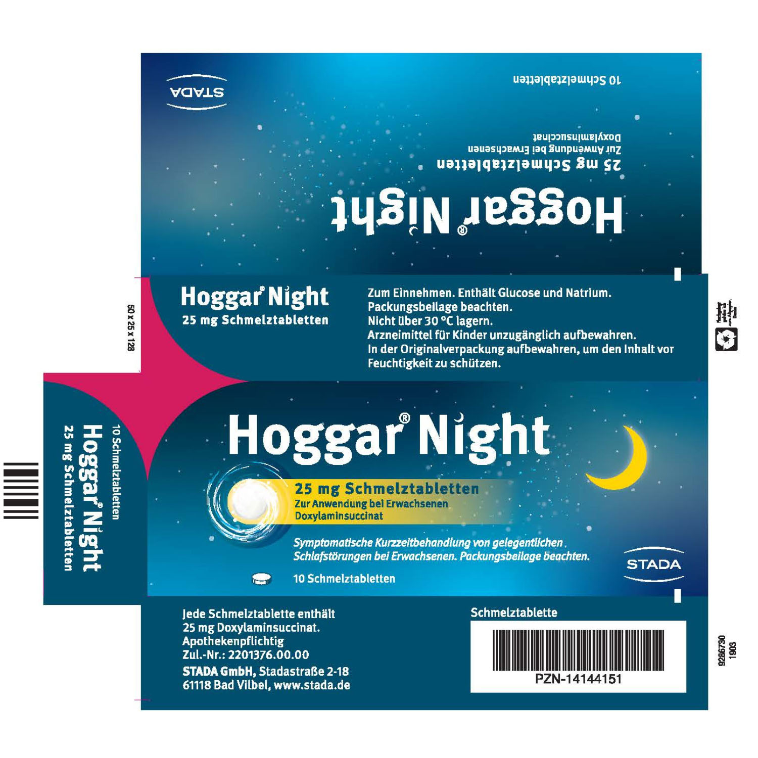 Anwendungsgebiete: Zur symptomatischen Kurzzeitbehandlung von gelegentlichen Schlafstörungen bei Erwachsenen. Hinweis: Nicht alle Schlafstörungen bedürfen einer medikamentösen Therapie. Oftmals sind sie Ausdruck körperlicher oder seelischer Erkrankungen und können durch andere Maßnahmen oder eine Therapie der Grundkrankheit beeinflusst werden. Deshalb sollte Hoggar® Night nicht zur Dauerbehandlung von länger anhaltenden Schlafstörungen angewendet werden. Suchen Sie stattdessen Ihren behandelnden Arzt auf. Hinweis: Enthält Glucose und Natrium.