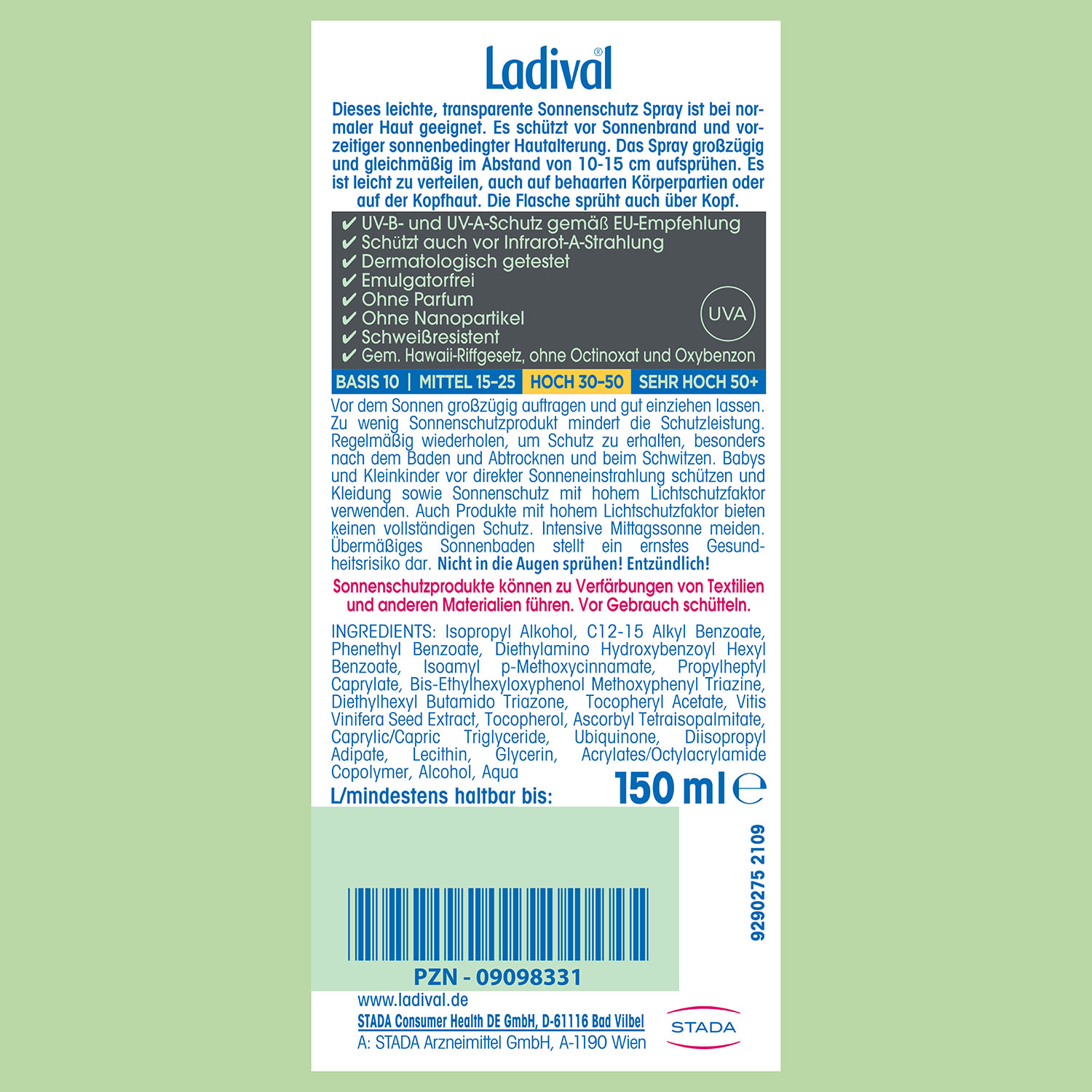 Da sich Ladival® Sonnenschutz Spray auch über Kopf sprühen lässt, sind auch schwer zugängliche Stellen wie z.B. der Rücken erreichbar. Zudem ist das Ladival® Sonnenschutz Spray transparent, d.h. nicht sichtbar auf der Haut.