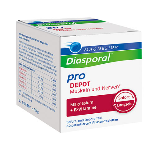 Um den intensiven Herausforderungen des Alltags (z.B. in Beruf, Studium und Familie) gewachsen zu sein, benötigen wir gesunde Muskeln und Nerven. Hierzu leistet Magnesium-Diasporal® Pro DEPOT Muskeln und Nerven einen sinnvollen Beitrag: