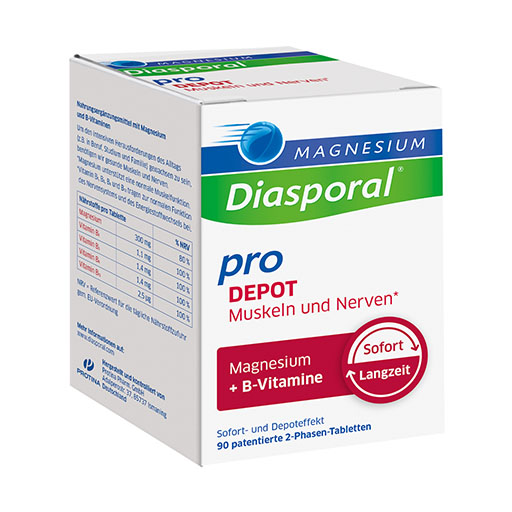 Um den intensiven Herausforderungen des Alltags (z.B. in Beruf, Studium und Familie) gewachsen zu sein, benötigen wir gesunde Muskeln und Nerven. Hierzu leistet Magnesium-Diasporal® Pro DEPOT Muskeln und Nerven einen sinnvollen Beitrag: