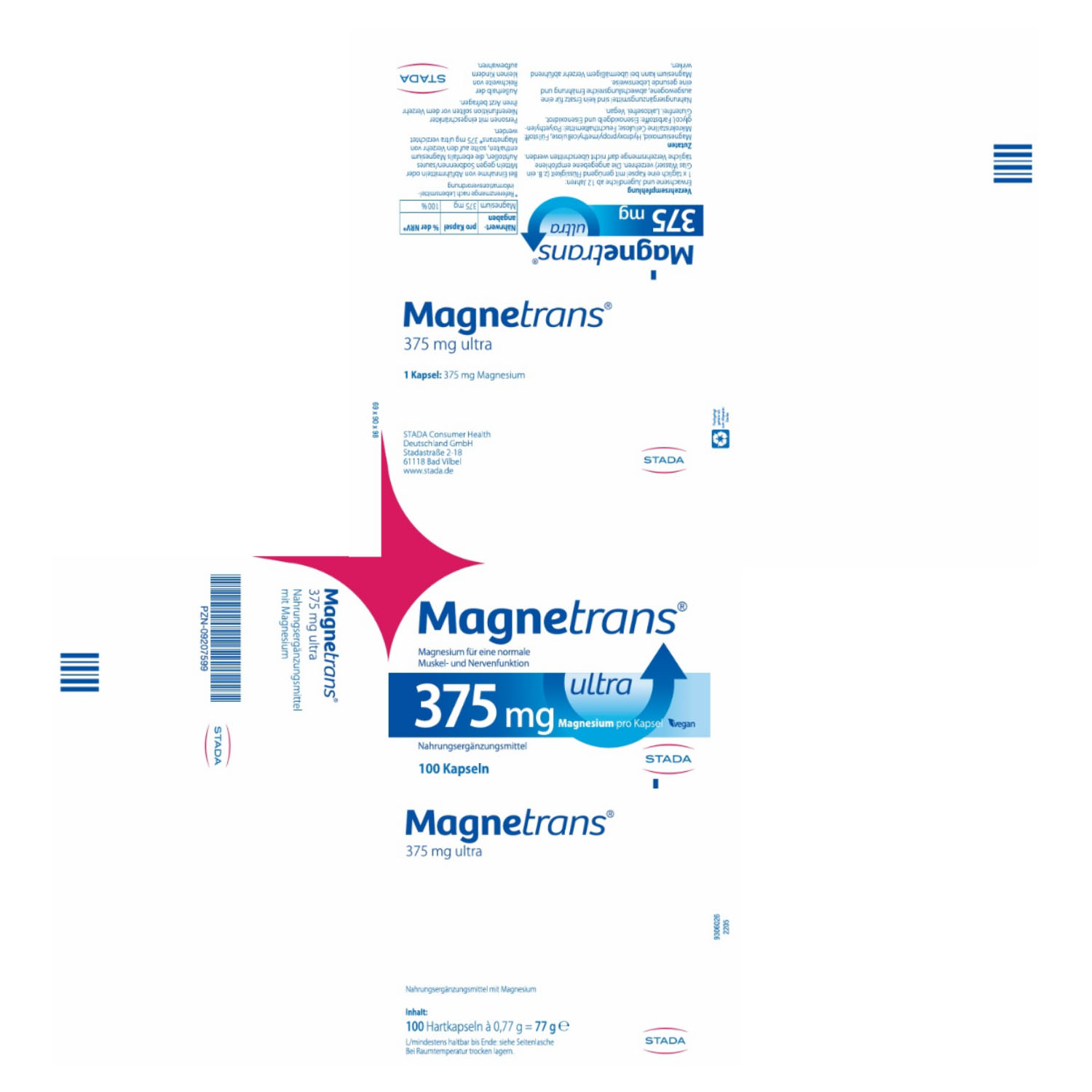 Unser Körper kann Magnesium nicht selbst herstellen. Deshalb ist eine ausreichende Zufuhr über die Nahrung notwendig. Diesen Bedarf können Sie durch Lebensmittel decken. Auch das Nahrungsergänzungsmittel Magnetrans® 375 mg ultra kann zu einer zusätzlichen Versorgung mit Magnesium beitragen. Magnetrans® ultra 375 mg Kapseln helfen Ihnen, mit nur einer Kapsel täglich 100 % des täglichen Magnesiumbedarfs1 zu decken und einen Beitrag dazu zu leisten, die körpereigenen Magnesiumdepots aufzufüllen. Magnetrans® 375 mg ultra Kapseln sind laktose- und glutenfrei und geeignet für Veganer.
