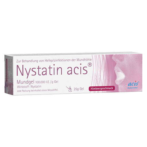 Kinder (≥ 2 Jahre) und Erwachsene: Nystatin acis Mundgel 3- bis 6-mal täglich, in schweren Fällen alle 2 Stunden, jeweils 1g Gel (1 Messlöffel) einnehmen.