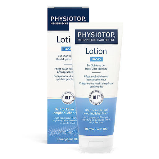 Physiotop® Basis Lotion mit ihrer auf die Bedürfnisse empfindlicher, trockener und beanspruchter Haut abgestimmten Rezeptur stärkt durch die innovative OLT®-Technologie die natürliche Haut-Lipid-Barriere und versorgt die Haut mit Feuchtigkeit, z. B. durch Glycerin und den essentiellen Aminosäuren Glycin und Serin. Physiotop® Basis Lotion eignet sich daher ideal für die tägliche Basis-Pflege sowie zur therapiebegleitenden Pflege zwischen den Schüben bei Neurodermitis – insbesondere für größere Hautpartien wie Oberkörper, Arme und Beine.