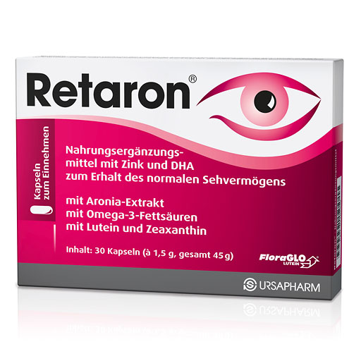 Retaron® enthält einen Extrakt aus den Früchten der Apfelbeere (Aronia melanocarpa), die Mineralstoffe Zink und Selen, die Carotinoide Lutein und Zeaxanthin, die Vitamine C und E sowie die essenziellen Omega-3-Fettsäuren DHA und EPA.