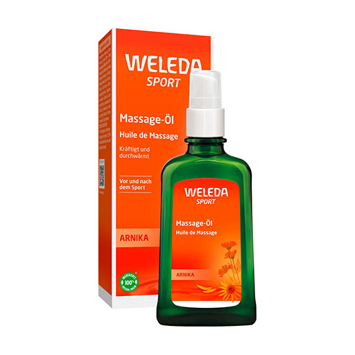 Haben Sie Lust auf Bewegung? Eine wärmende Massage vor oder nach dem Sport mit Weleda Arnika-Massage-Öl fördert die Durchblutung, lockert die Muskulatur und schützt so vor unangenehmem Muskelkater. Die Komposition mit Auszügen aus Arnikablüten und Birkenblättern, sowie Sonnenblumen- und Olivenöl kräftigt die Hautfunktionen und hält die Haut elastisch. Angenehm aktivierend ist der natürliche Lavendel- und Rosmarinduft. Masseure und Sportler schätzen das Arnika-Massageöl.