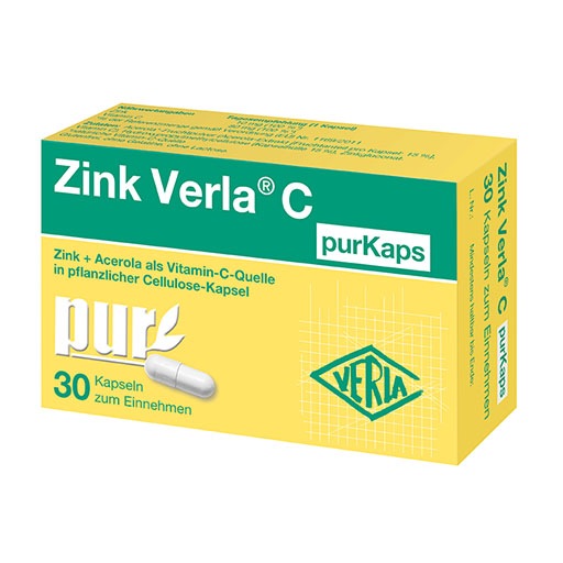 Eine optimale Versorgung mit Zink und Vitamin C ist sehr wichtig, denn sie tragen unter anderem zu einer normalen Funktion des Immunsystems bei. Mit Zink Verla® C purKaps können Sie Ihre tägliche Ernährung und Versorgung mit Zink und Vitamin C sinnvoll unterstützen.